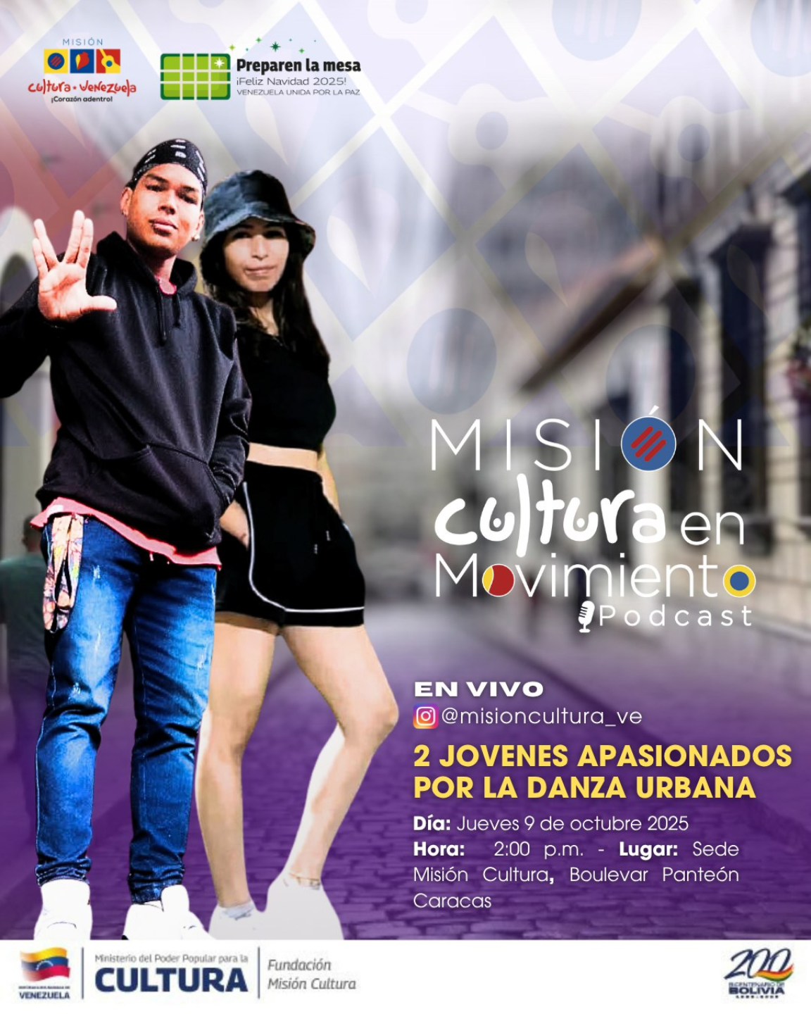 La cita es este martes 09 de octubre de 2025, a las 2:00 p.m., En Vivo a través de la cuenta oficial de Instagram @MisiónCultura_Ve.