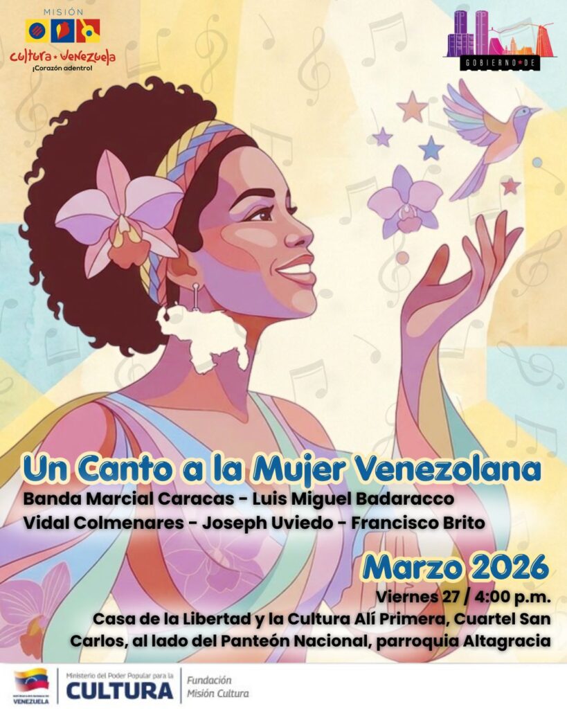 La cita es en la parroquia Altagracia, específicamente en el Cuartel San Carlos (adyacente al Panteón Nacional), un espacio que hoy se erige como centro de la libertad y la cultura, que invita a todo el público caraqueño a disfrutar de este homenaje diseñado para celebrar la fuerza, la gracia y la resiliencia de la mujer venezolana a través del lenguaje universal de la música.