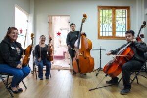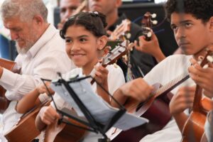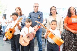 Al final del acto y en honor al instrumento tradicional, Bien de Interés Cultural de la Nación, se hizo entrega de cuatros a niños y niñas de parroquias aledañas, velando por que el “cambur pintón” siga siendo el lenguaje de la paz y la soberanía en cada hogar.