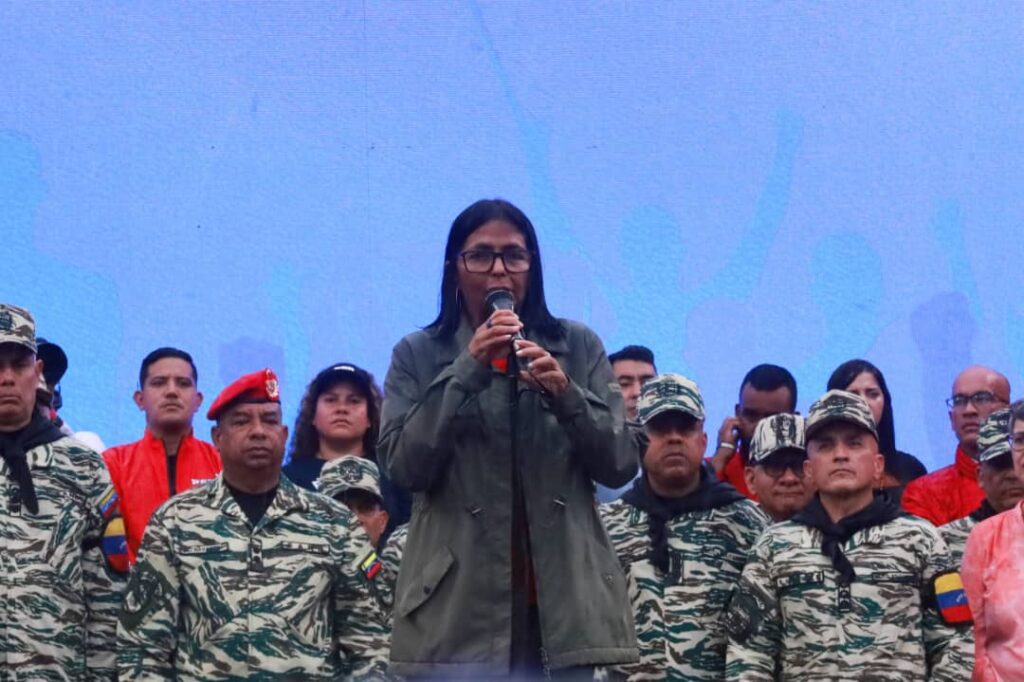 Presidenta (E) Delcy Rodríguez: “Le he pedido a la Fuerza Armada Nacional Bolivariana hoy más que nunca fusión cívico militar policial, porque sepan que aquí en el territorio defendemos nuestro tricolor”.