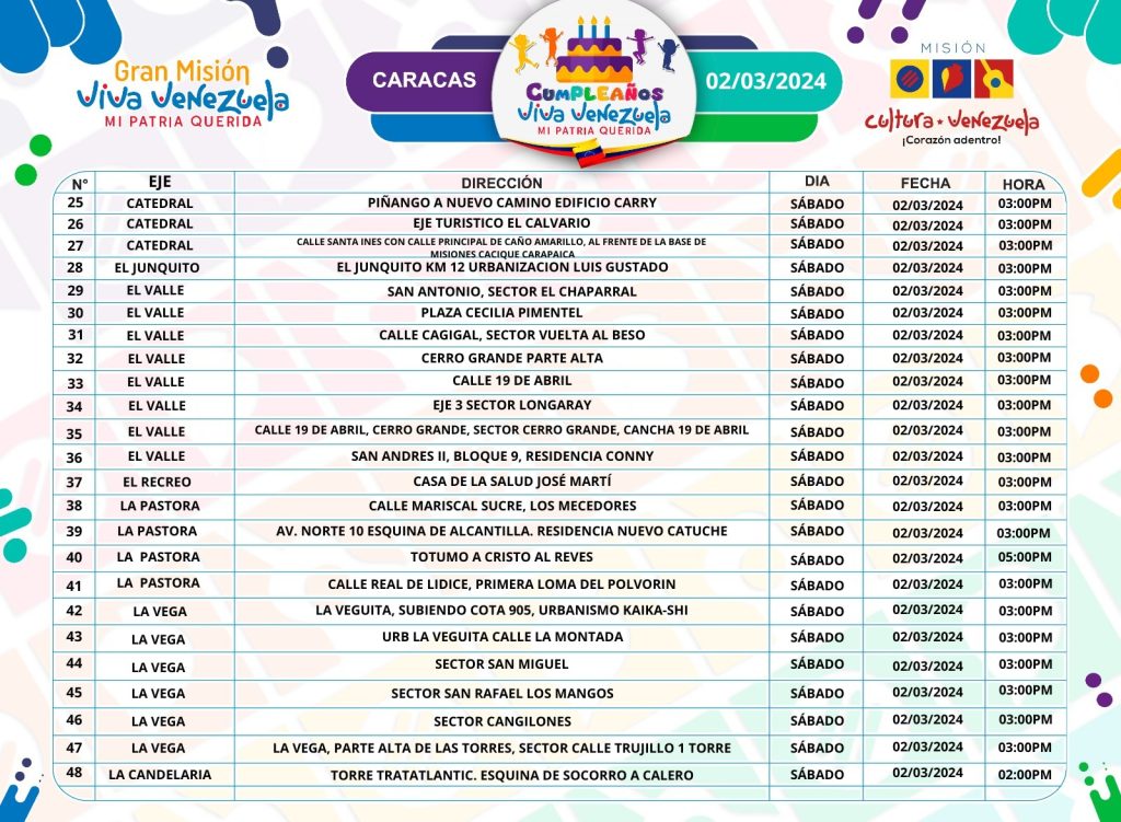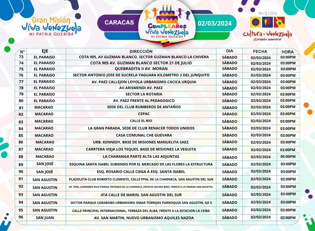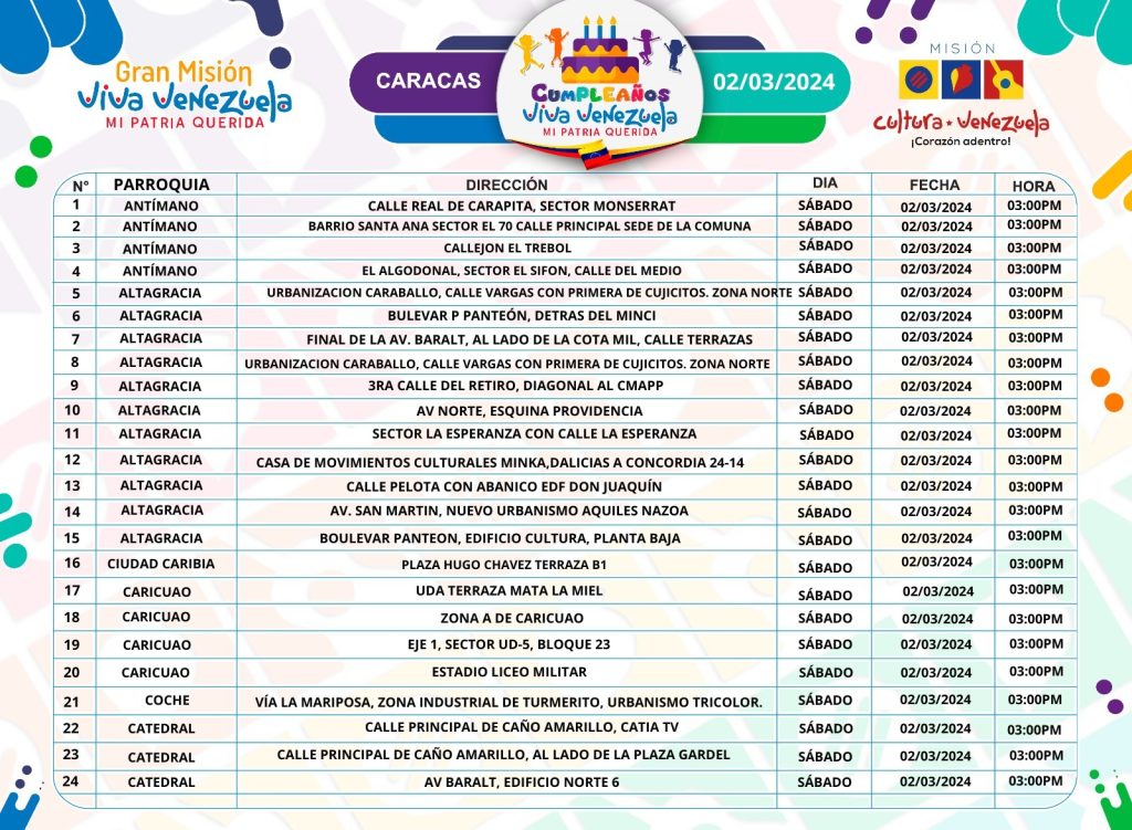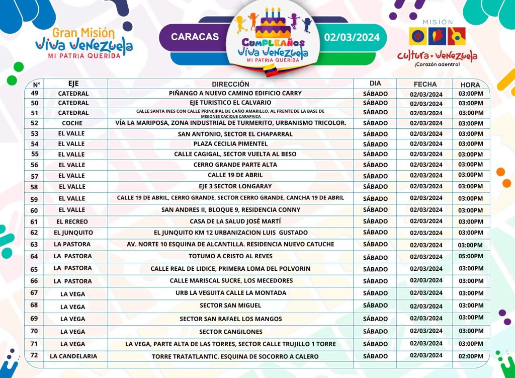 ¡Conoce todos los Cumpleaños Viva Venezuela que se celebran este fin en Caracas!