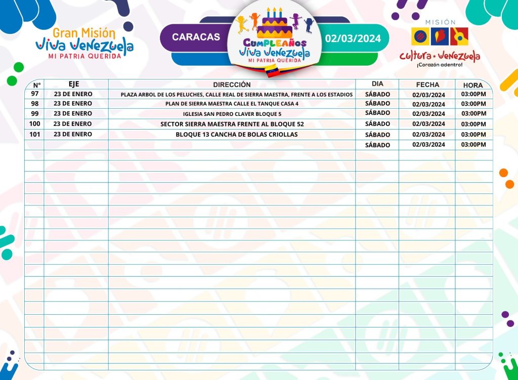 En resumen, el Cumpleaños Viva Venezuela se erige como un evento emblemático que celebra la infancia, fomenta la cultura comunitaria y promueve valores positivos entre los participantes, contribuyendo a la construcción de una sociedad más inclusiva, respetuosa y solidaria. ¡Celebremos juntos en armonía y amor por nuestra comunidad!
